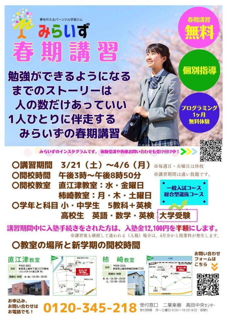 3/21(土)~みらいずの春期講習が始まります。