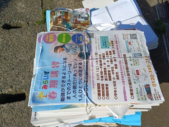 先日、教室で両面使ったプリントを地元の小学校の古紙回収に出してきました。