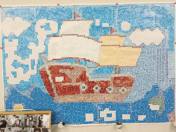 貼り絵は完成まであと少しです。
