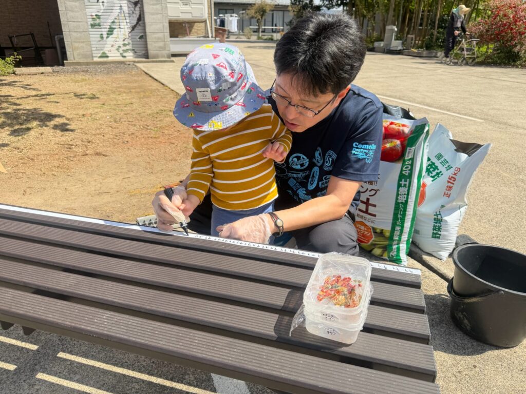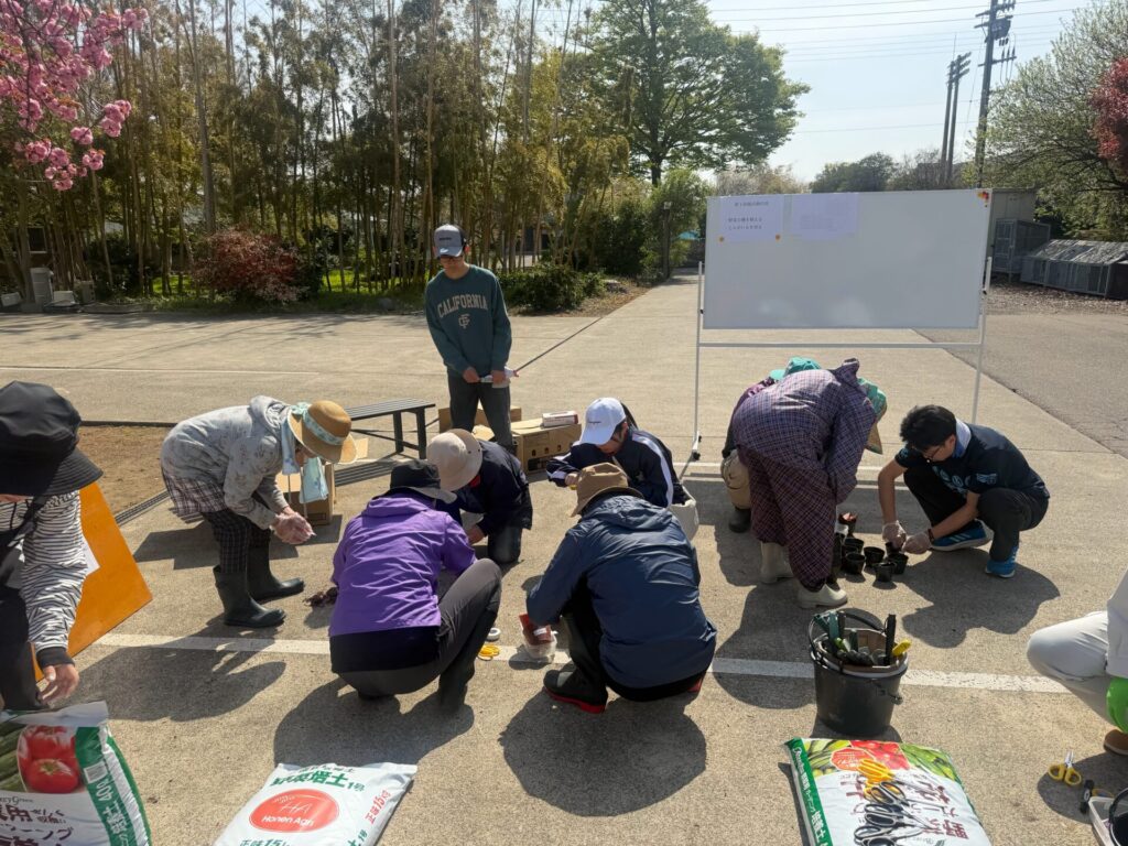 この日はポットに種を植える作業でした。